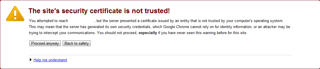 For NDC Host's RapidSSL certificates in newer browsers (such as Chrome, IE9, etc.) an intermediate CA bundle is needed as these browsers no longer provide the CA for RapidSSL. You will see an error like the one below from Google Chrome if the CA bundle is not installed with your certificate.
